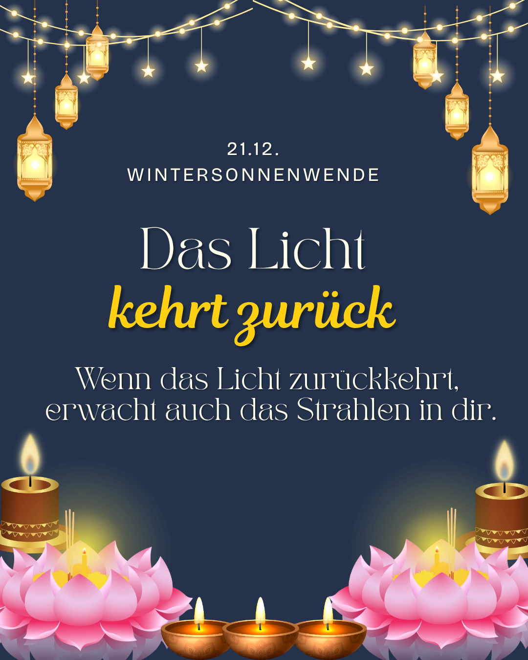 Am 21.12. feiern wir die Wintersonnenwende. Die längste Nacht und der kürzeste Tag und ab da ändert es sich wieder. Das Licht kehrt zurück – in die Welt und zu dir.